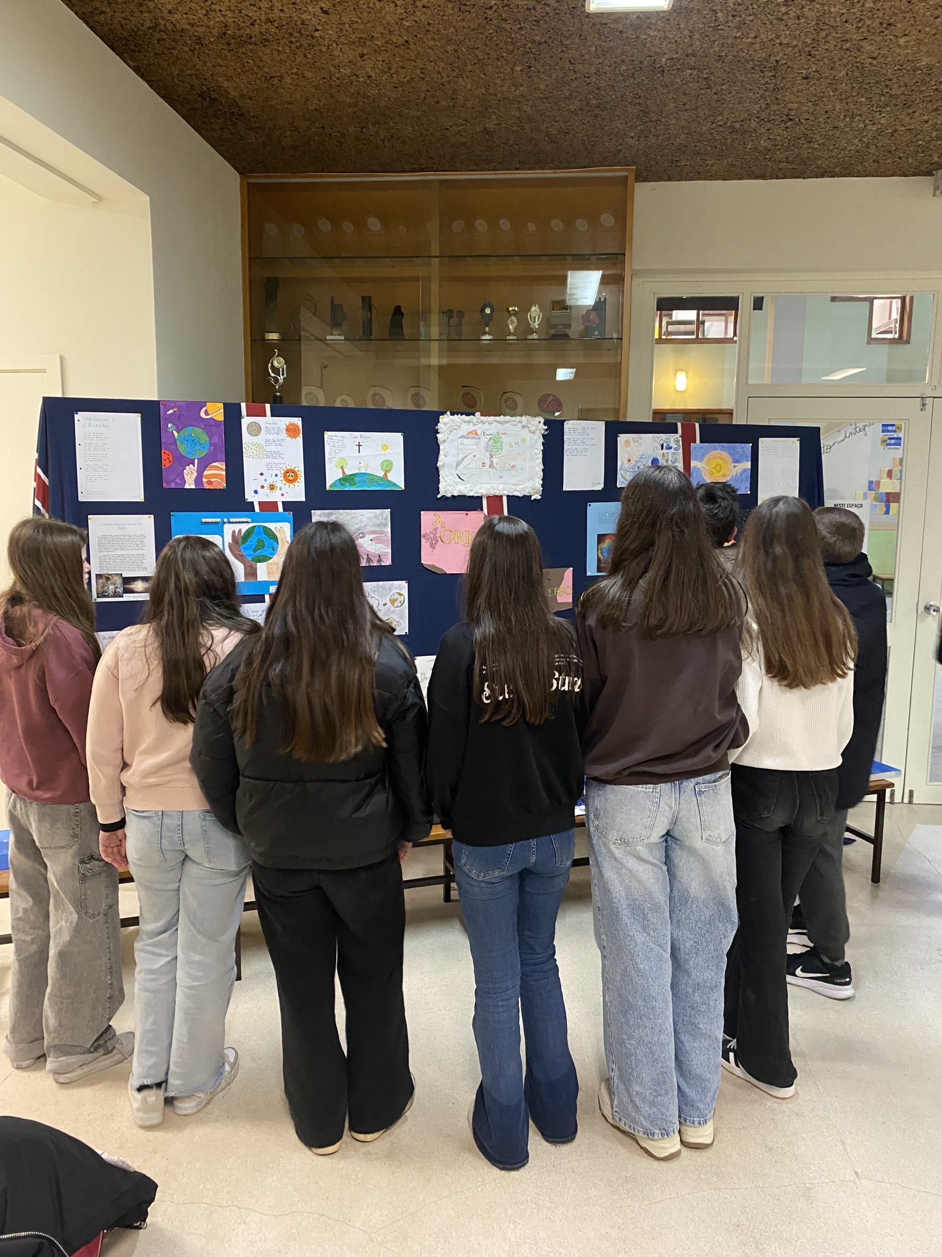O resultado final encontra-se em exposição no Hall de Entrada do principal edifício escolar, convidando toda a comunidade educativa a observar os trabalhos, refletir sobre as diferentes perspetivas apresentadas e valorizar o empenho e a criatividade dos alunos. Esta iniciativa reforça a escola como um espaço de partilha de saberes, reflexão e construção de conhecimento.