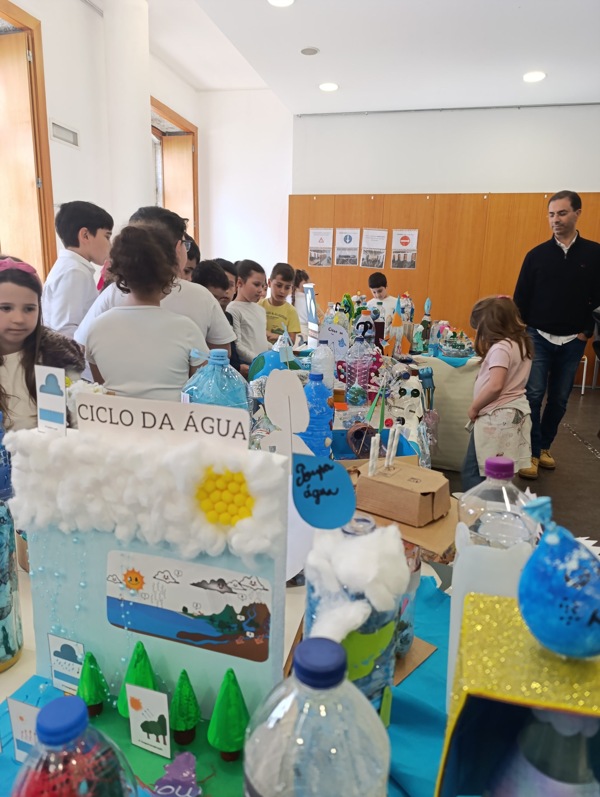 Nos dias 23 e 24 de março, decorreu no auditório da Junta de Freguesia uma exposição de trabalhos realizados pelos alunos da Escola Básica da Sé. Estes trabalhos foram desenvolvidos no âmbito do Programa Eco-Escolas. Uma das atividades previstas no Plano de Ação deste programa consistia na comemoração do Dia Mundial da Água, assinalado a 22 de março, que este ano coincidiu com um domingo. Nesse sentido, foi proposto aos alunos e aos pais/encarregados de educação a elaboração de um trabalho com dimensões aproximadas às de uma garrafa de 1,5 litros, utilizando materiais recicláveis. A garrafa poderia ser incorporada ou não no trabalho. O objetivo desta atividade foi sensibilizar para a forma como a água se apresenta atualmente no planeta, promovendo a reflexão sobre a sua preservação e o impacto da poluição. Posteriormente, os trabalhos foram expostos, permitindo a sua visita por parte de alunos, pais, encarregados de educação e restante comunidade. Foi com grande satisfação que se verificou a participação empenhada de todos, traduzida na apresentação de trabalhos de elevada qualidade.